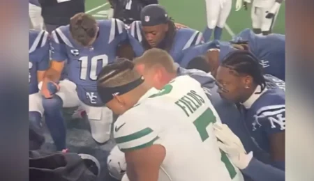SPORT : DES ADVERSAIRES DE FOOTBALL AMERICAIN S’UNISSENT DANS LA PRIERE